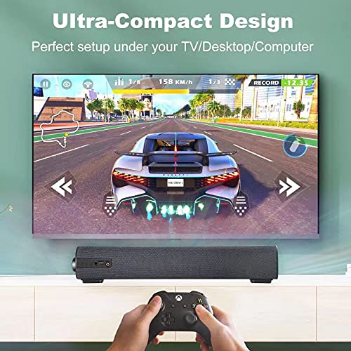Sound Bars for TV/PC, 16.9″ Outdoor/Indoor Mini Soundbar with Wired & Wireless Bluetooth 5 Speaker, 2 X 5 W Sound Bar with Subwoofer for Small Room, Coax/AUX/RCA/TF Card and Remote Control (Updated)