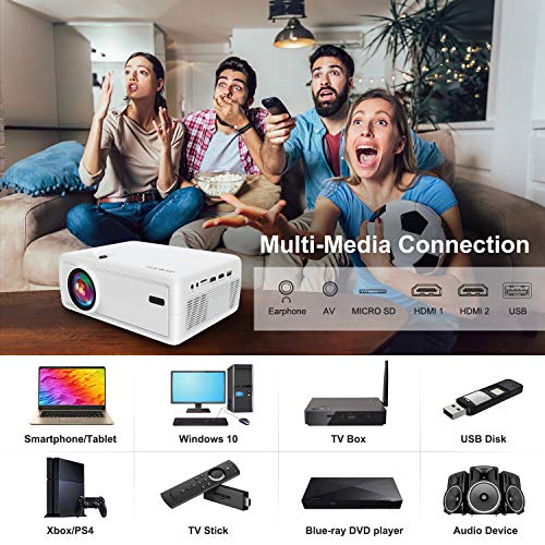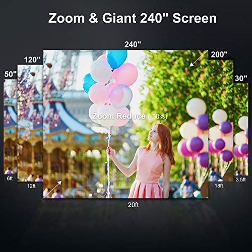【100″ PROJECTOR SCREEN INCLUDED】 In order to meet the customer outdoor movies needs, 100″ Portable Projector Screen in the package. Our projector for outdoor movies provides a watching size from 72” to 240” with the projection distance between 6.8ft to 22ft. Enjoy the great movies outside with your family in your yard( Recommended to use in the evening).